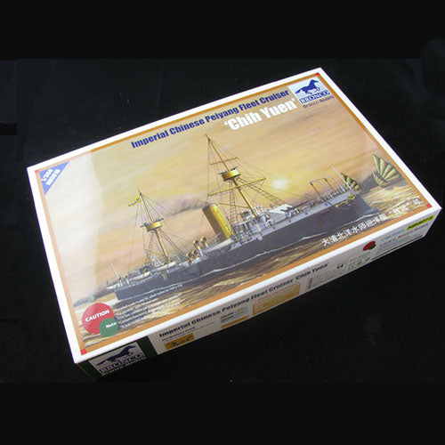 This is a 1/350 scale plastic model kit by Bronco (NB5017) of the Imperial Chinese protected cruiser Chih Yuen. This famous warship of the Beiyang Fleet is best known for its heroic charge during the Battle of the Yalu River in 1894. The kit is highly detailed and can be built as either a full-hull or waterline model. It includes photo-etched railings, nameplates, and other fine details to create a museum-quality replica of this historic ship.