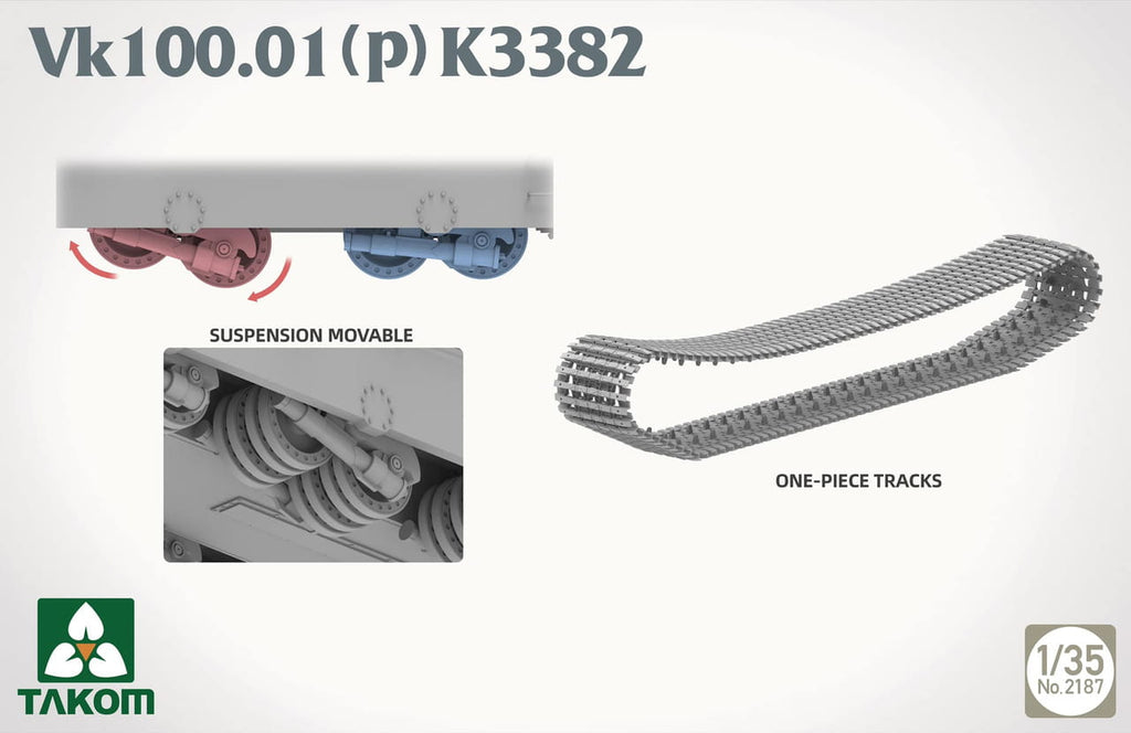 • 1/35 scale VK 100.01 (P) K3382 German heavy tank plastic model kit by Takom (No. 2187)