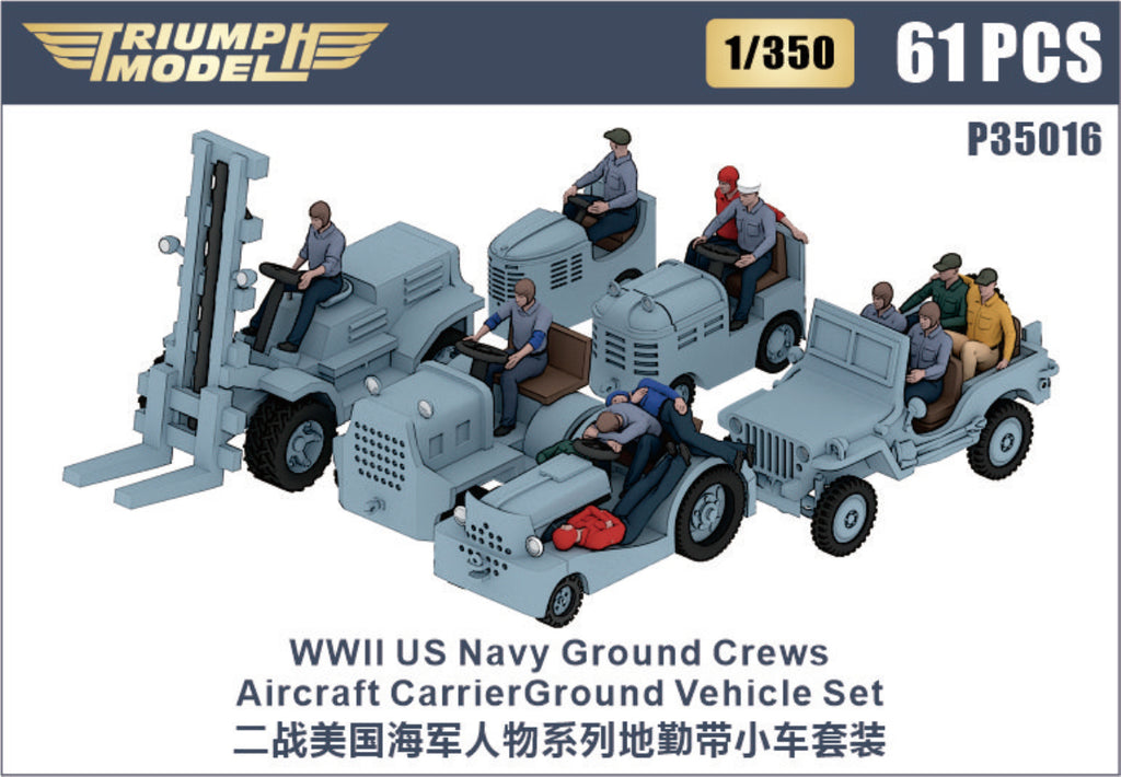 • 1/350 scale WWII US Navy ground crew and aircraft carrier ground vehicle set by Triumph Model