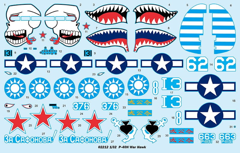 1:32 scale model kit of the Curtiss P-40N Warhawk fighter aircraft.