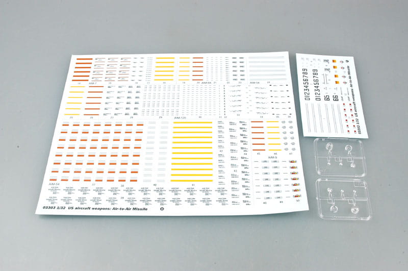 Model: 1:32 scale plastic accessory kit featuring a comprehensive collection of US air-to-air missiles.